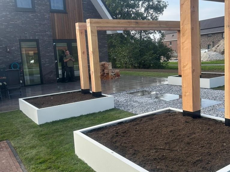 We werken vooral met hout, staal en combinaties daarvan. Deze materialen zijn stevig, duurzaam en laten zich goed afstemmen op andere elementen in de tuin.