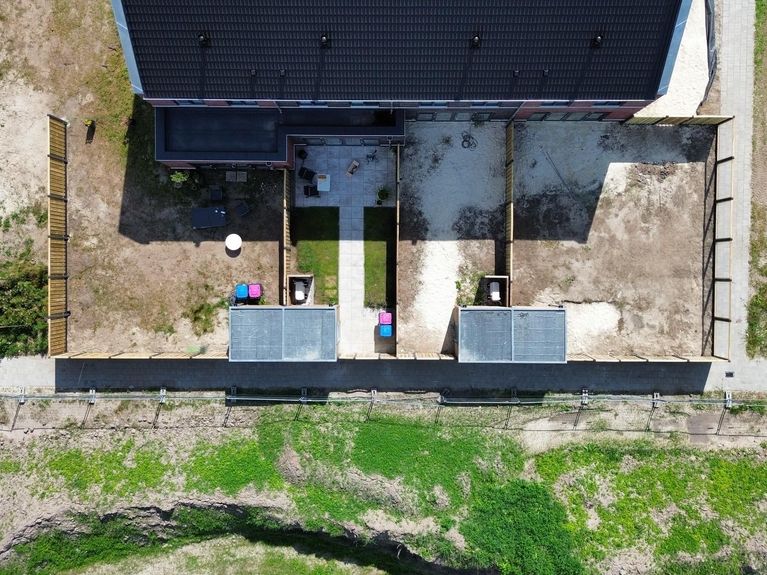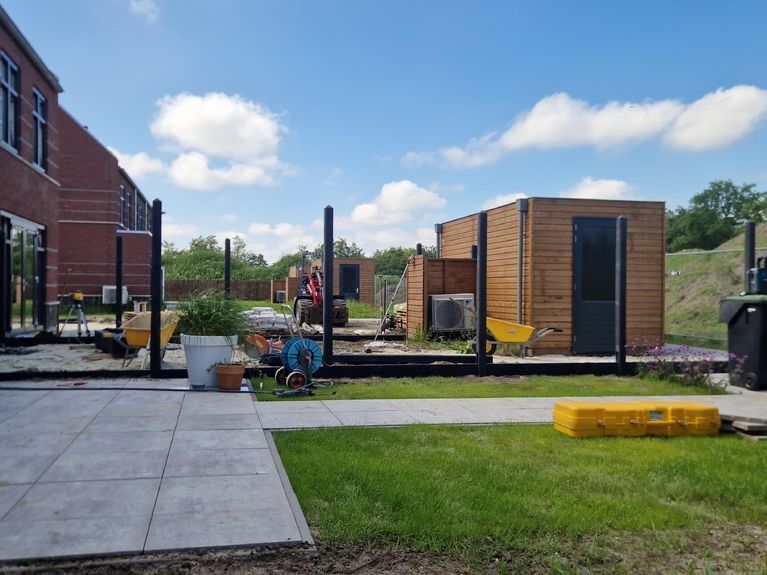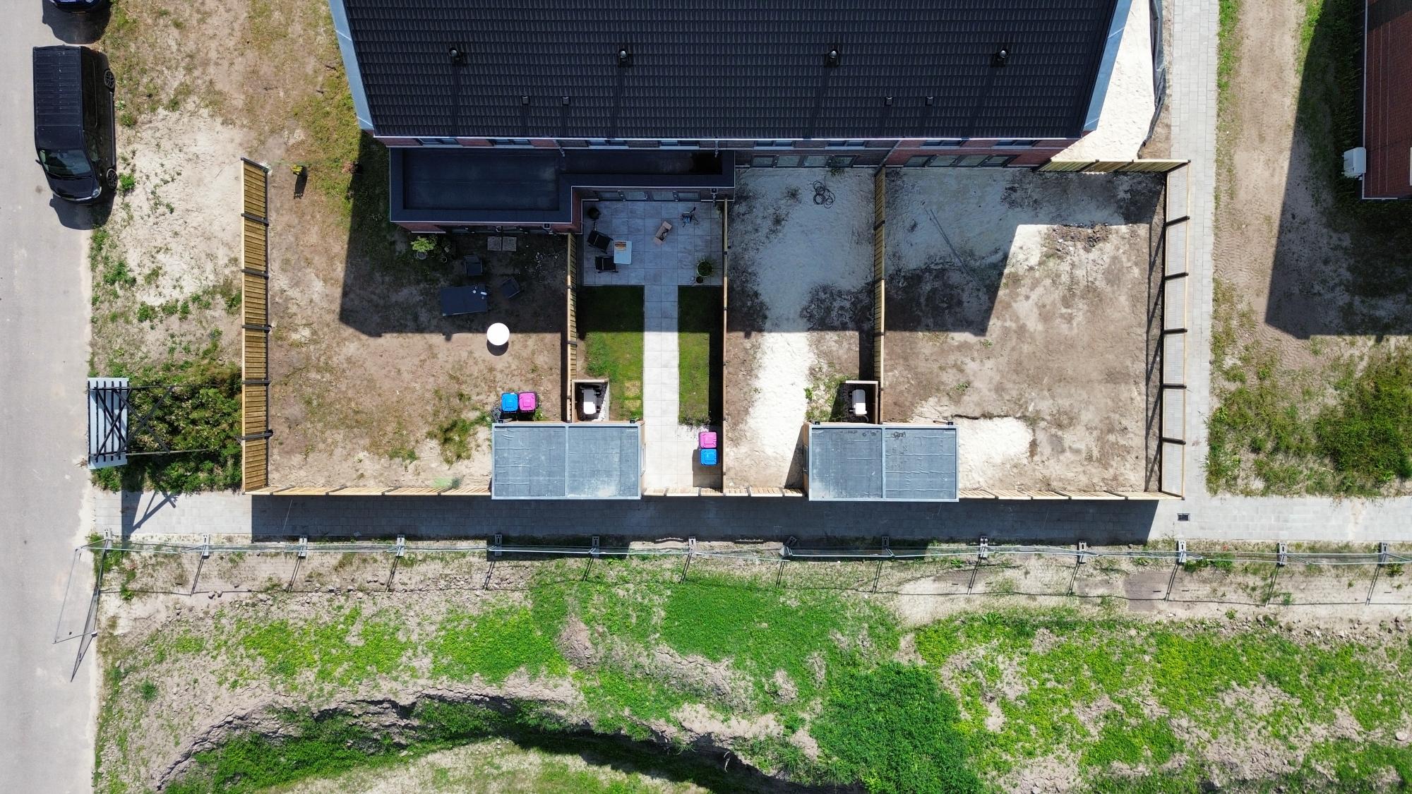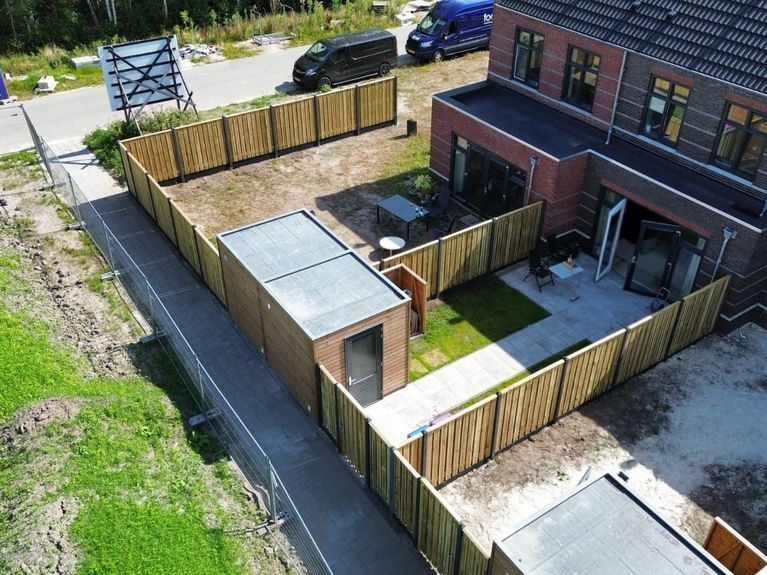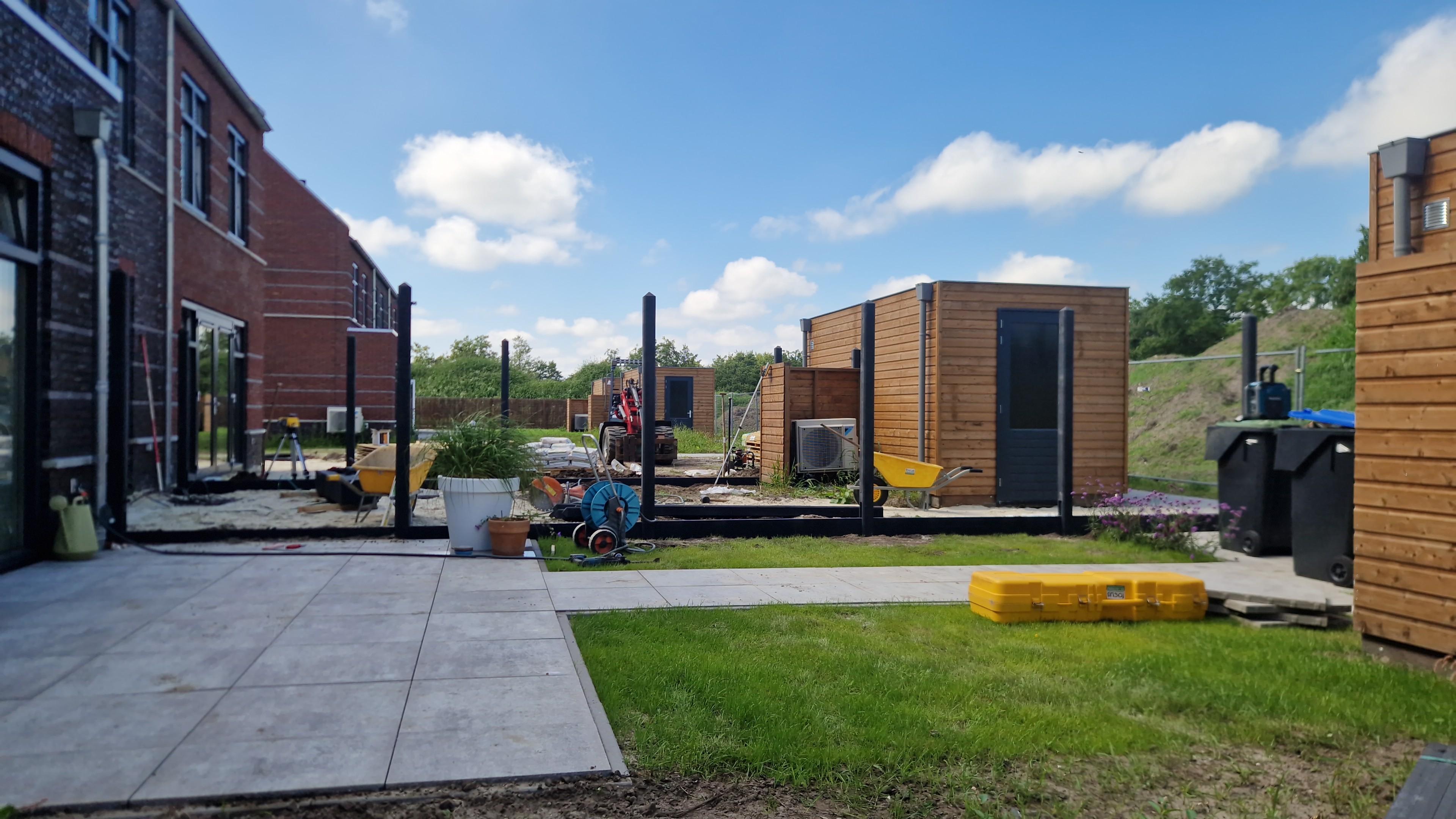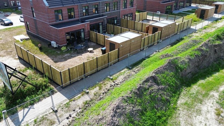 De schuttingen zijn strak in lijn geplaatst, waardoor de tuinen één rustig geheel vormen. Door de combinatie van robuuste betonpalen, stevige onderplaten en houten schermen is het resultaat niet alleen mooi om te zien, maar ook bestand tegen weer en wind. Een duurzaam project dat laat zien hoe functionaliteit en uitstraling hand in hand gaan.